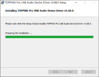 1. 部分杀毒软件可能会拦截驱动安装导致驱动安装失败。先关闭杀毒软件,然后前往控制中心的安装目录(右键点击黑色TP快捷图标,选择“打开文件所在位置”),找到驱动安装包ToppingProUsbAudio.exe,右键选择“以管理员身份运行”重新安装驱动。